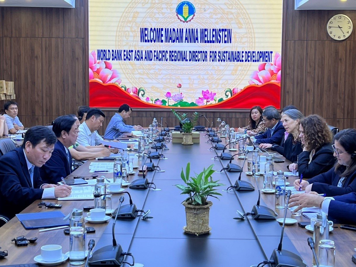 Trong buổi làm việc, lãnh đạo Bộ NN-PTNT và WB đã trao đổi, thảo luận về nội dung của các dự án chủ chốt, hợp tác giữa hai bên hiện nay như: Dự án sửa chữa và nâng cao an toàn đập và quan hệ đối tác chiến lược tiếp theo trong chương trình Hợp tác ngành nước (VWE); Dự án Chống chịu khí hậu và chuyển đổi tổng hợp vùng Đồng bằng sông Cửu Long (MERIT); Chương trình 1 triệu ha lúa chất lượng cao và carbon thấp; Thỏa thuận chương trình giảm phát thải vùng Bắc Trung bộ (ERPA); Dự án Phát triển thủy sản bền vững và Chương trình tiếp cận nhiều giai đoạn về khả năng phục hồi ven biển giai đoạn 1. Bộ trưởng và bà Anna Wellenstein đã thảo luận về các khó khăn trong quá trình cách tháo gỡ khó khăn và định hướng khả năng mở rộng thêm các dự án trong thời gian tới.