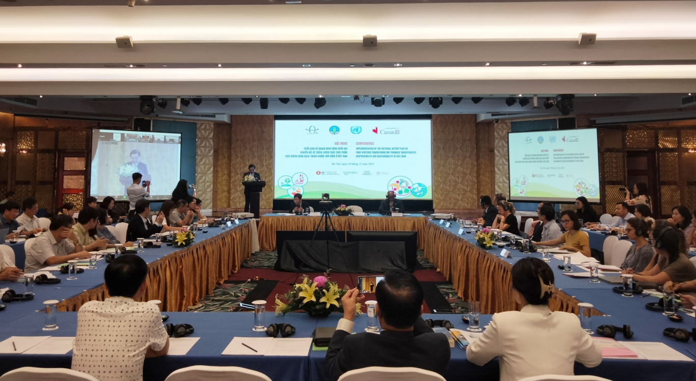 Hôm nay ngày 10/11/2023 tại Hà Nội, Bộ Nông nghiệp và Phát triển nông thôn và các đối tác tổ chức Hội nghị "Triển khai Kế hoạch hành động quốc gia chuyển đổi hệ thống lương thực thực phẩm theo hướng minh bạch, trách nhiệm và bền vững ở Việt Nam". Bộ trưởng Bộ Nông nghiệp và PTNT và Trưởng đại diện Tổ chức Lương thực và Nông nghiệp của Liên hiệp quốc đồng chủ trì hội nghị.