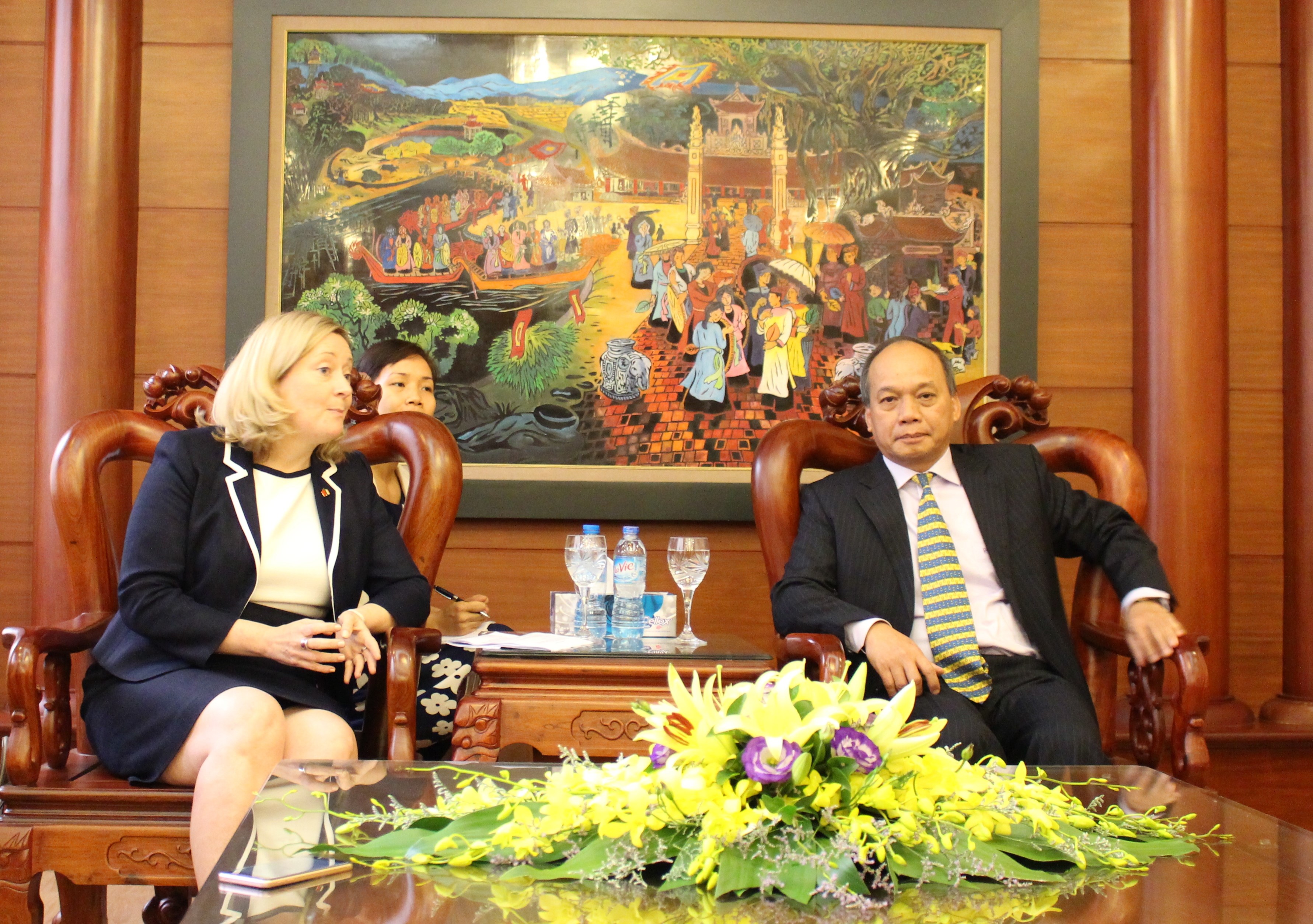 Trong buổi làm việc với Thứ trưởng Bộ Nông nghiệp và PTNT Vũ Văn Tám, Đại sứ Cộng hòa Ireland tại Việt Nam, Bà Cáit Moran cam kết đẩy mạnh hỗ trợ Việt Nam trong lĩnh vực nâng cao năng lực ngành nông nghiệp, đầu tư kỹ thuật công nghệ cao và hợp tác tự do thương mại để đưa sản phẩm của Việt Nam ra thị trường thế giới.